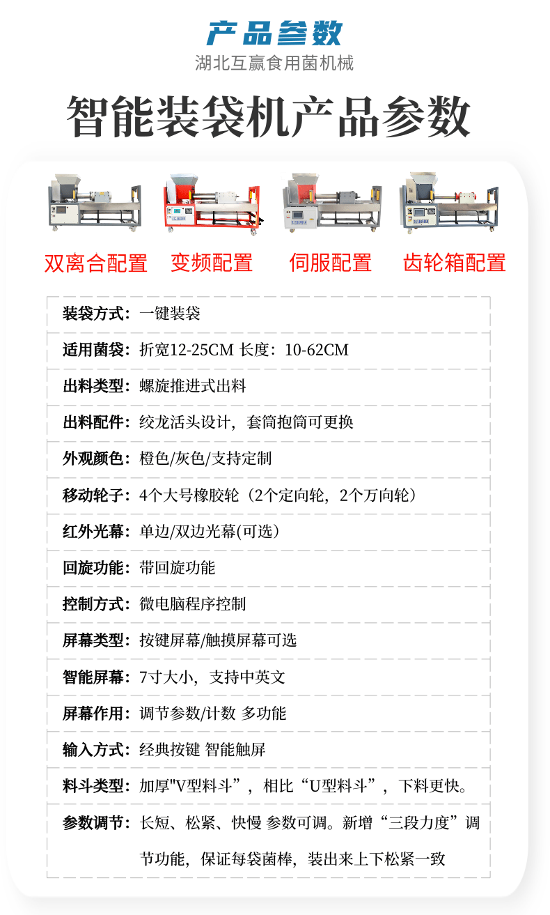 近年來代料香菇裝袋機(jī)的發(fā)展,越來越迅猛。其規(guī)模不斷擴(kuò)大,品種不斷增多,地域限制越來越少。是農(nóng)民增收的可靠保障,也是地方政府的經(jīng)濟(jì)支柱。自動(dòng)套袋食用菌裝袋機(jī)廣泛用在香菇、木耳、平菇、金針菇、茯苓、灰樹花、姬菇、秀珍菇等食用菌種植領(lǐng)域。是工廠、基地、合作社、家庭農(nóng)場理想的工廠化生產(chǎn)機(jī)械。生產(chǎn)規(guī)模的大小可根據(jù)資金、銷售量、經(jīng)營方式、技術(shù)力量、資源條件等綜合因素來確定,可用單機(jī),也可組合設(shè)計(jì)成半機(jī)械化...