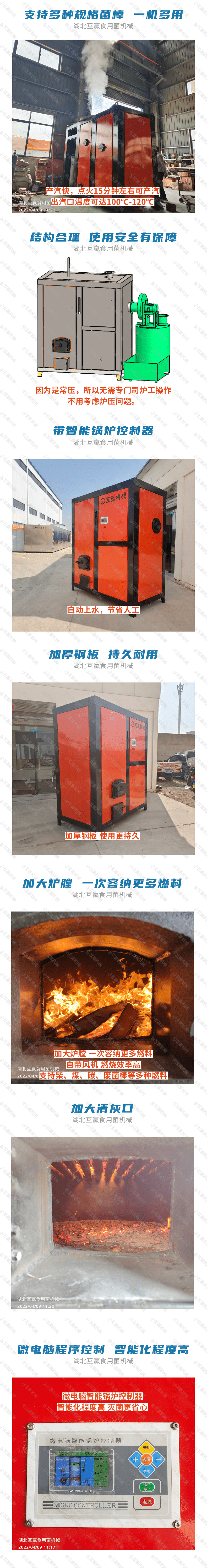 食用菌生產(chǎn)機械化技術(shù)的主要內(nèi)容是以樹枝、修剪條、鋸木屑和刨花、玉米芯、玉米稈、麥秸、稻草、花生殼、棉籽殼等為主要原料,經(jīng)機械加工成碎屑狀,添加一定的輔助材料,如麥麩、米糠、豆餅、花生餅、蔗糖、石膏、碳酸鈣、硫酸鎂等,經(jīng)機械制種、制袋、滅菌、接種、栽培、采收、加工,形成一整套機械化生產(chǎn)和栽培的技術(shù)規(guī)范。 食用菌常壓滅菌爐滅菌工藝。滅菌工藝一般分高壓滅菌和常壓滅菌。高壓滅菌主要用于制作母種、原種...
